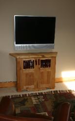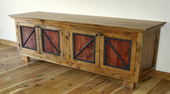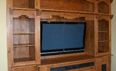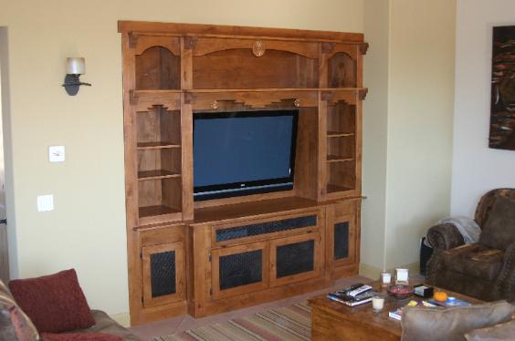Santa Fe style built in media center with Real bronze grilles on the doors to fit 52" TV